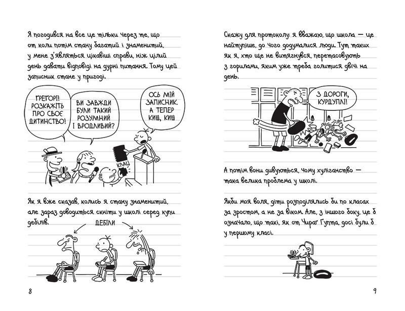 Ґреґ Гефл вважає, що дитинство – це справжній хаос. Середня школа, де навіть найменші деталі можуть бути драмою, а однокласники вже виглядають як дорослі – це справжня катастрофа. Але наш герой не здається! Вірою в себе, з гумором та оптимізмом він розповідає нам про свої пригоди і дає мудрі поради на шляху до дорослішання.